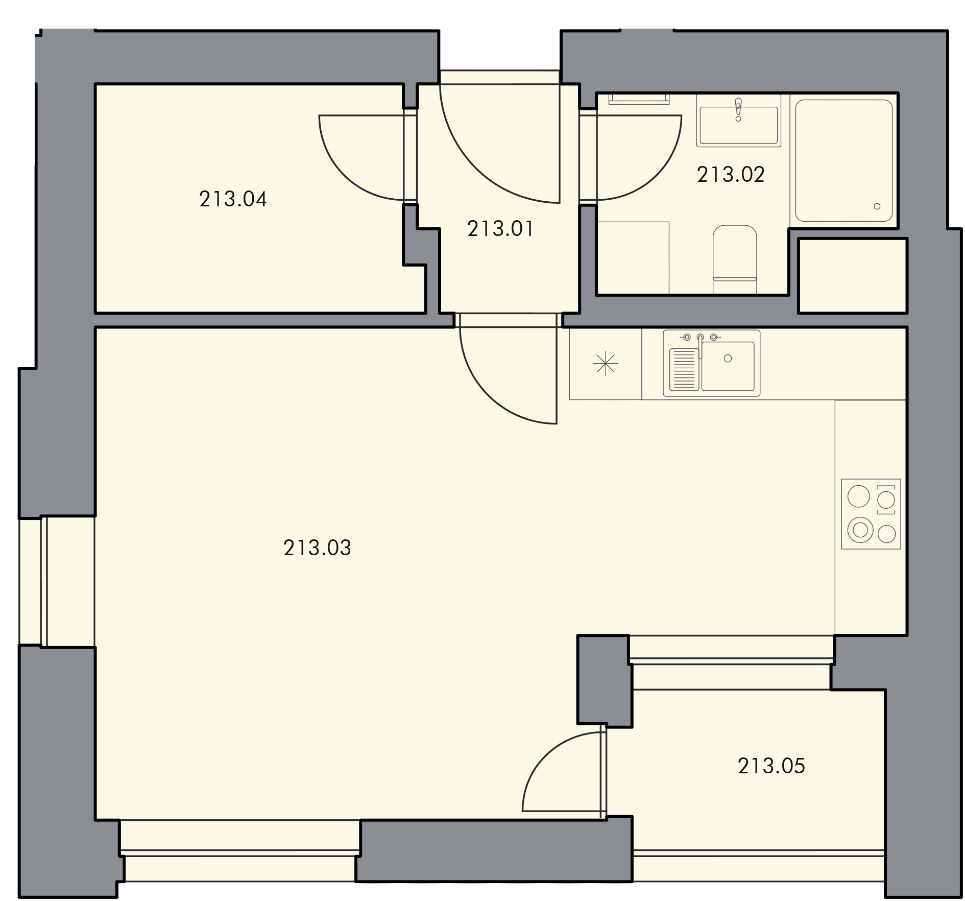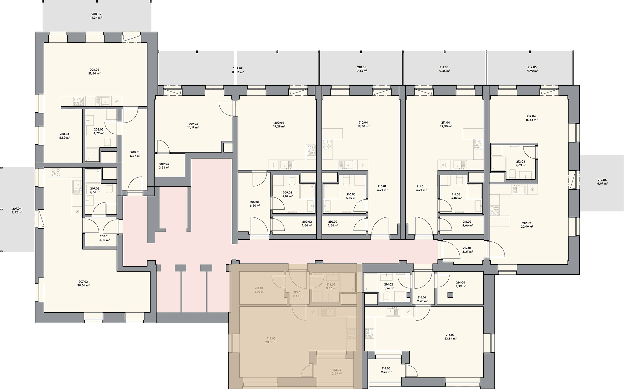 | 213.03 | Obývací Místnost + KK | 30.59 m2 |
