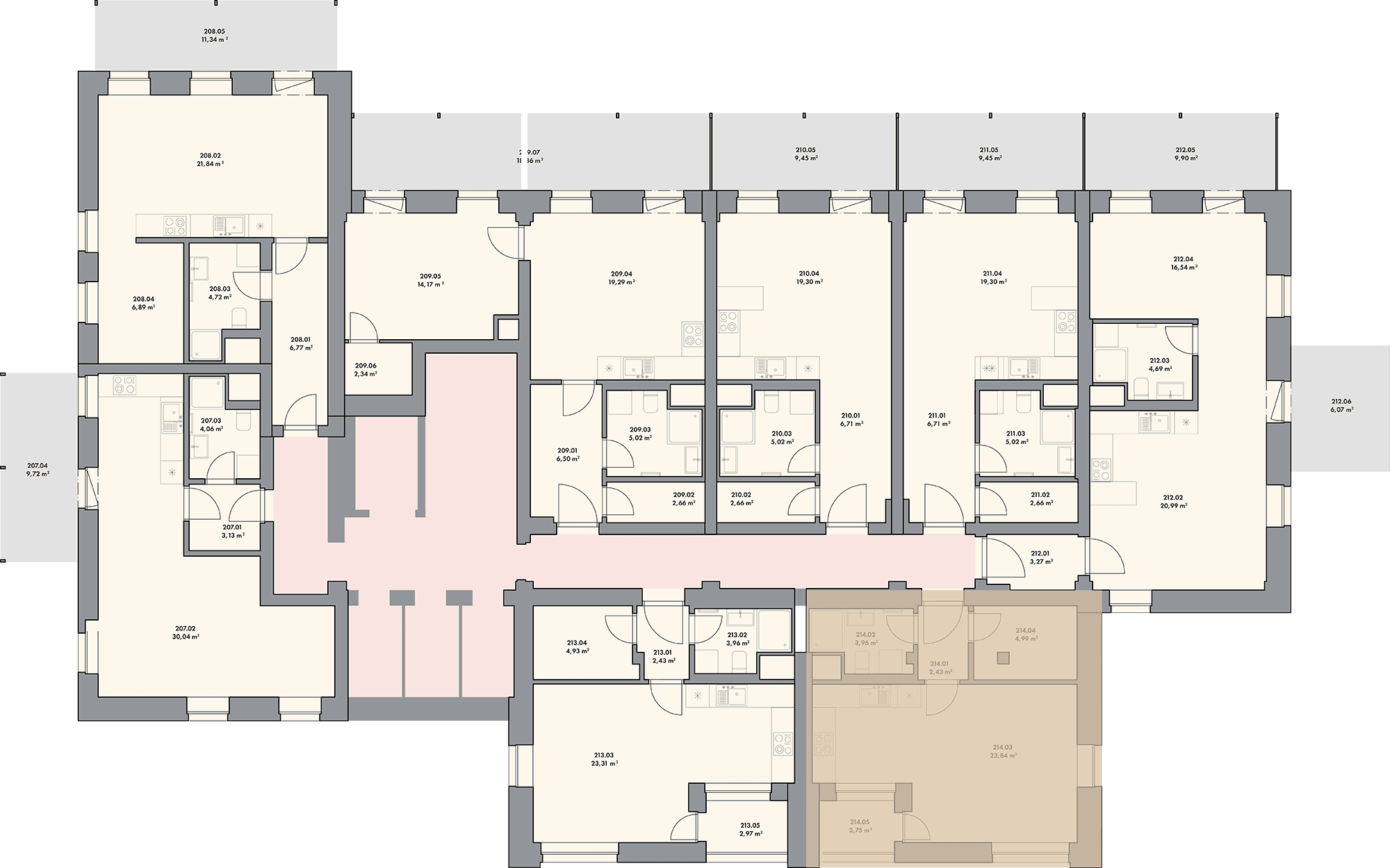 | 214.04 | Komora | 4.89 m2 |