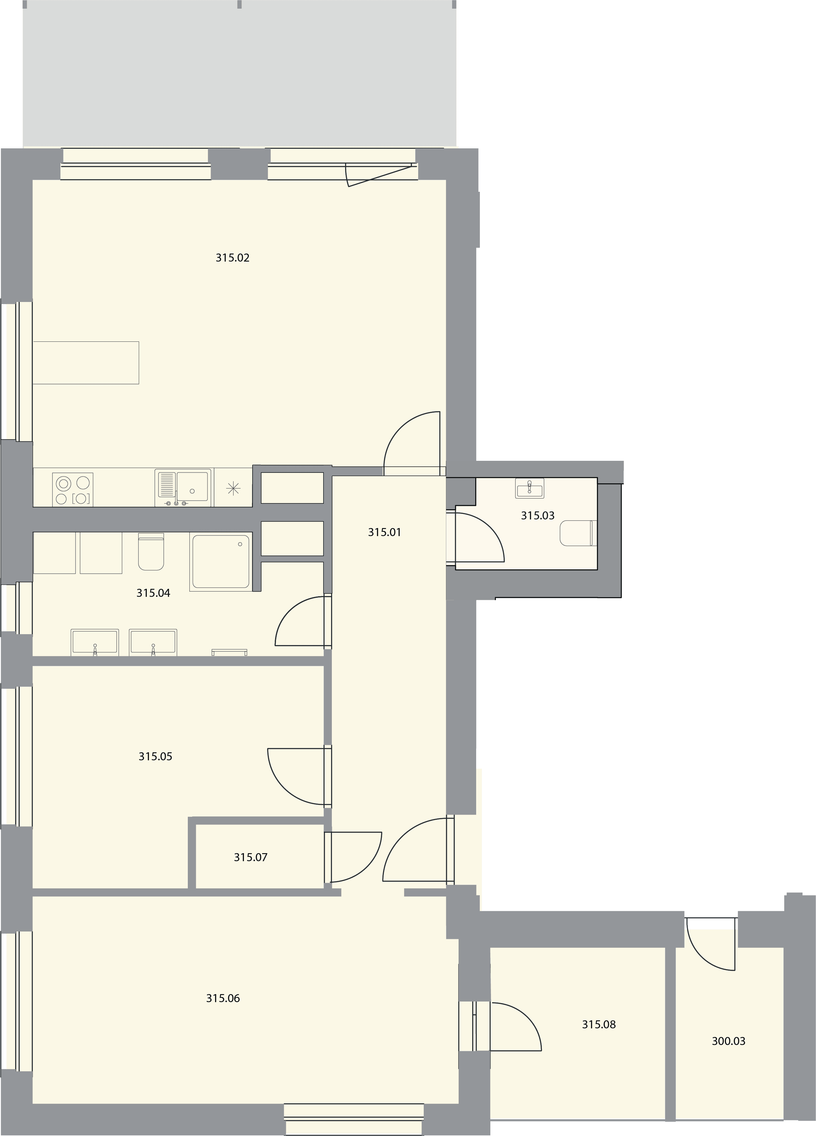 | 315.02 | Obývací Místnost + KK | 26.26 m2 |